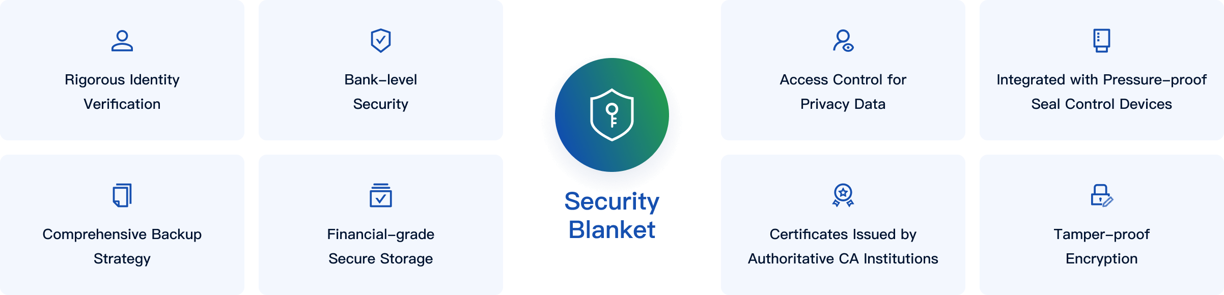 契约锁所有硬件均经过国家相关安全机构检测,实现信创全产业链适配,所有软件均按照银行安全级别进行设计开发,具有与纸质签署同等法律效力。