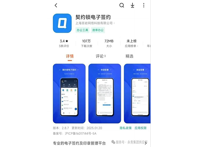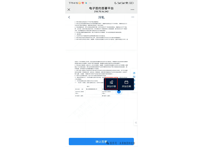 一、在永青供应链平台操作启用了电子签章的第一份合同确认