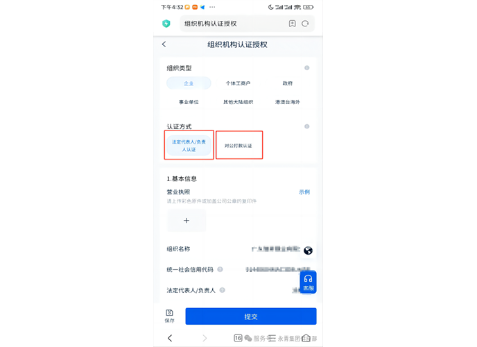法定代表人版企业认证(下面有另外一种对公打款认证方式)