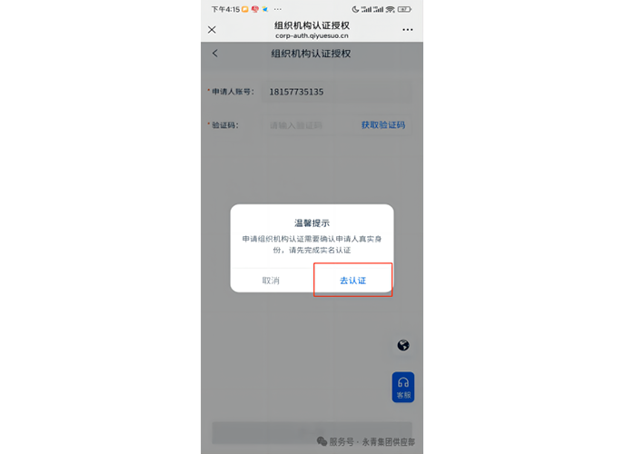 点击前往认证后会出现以下界面(邀请他人认证不会进入以下界面,由被邀请人认证时进入)